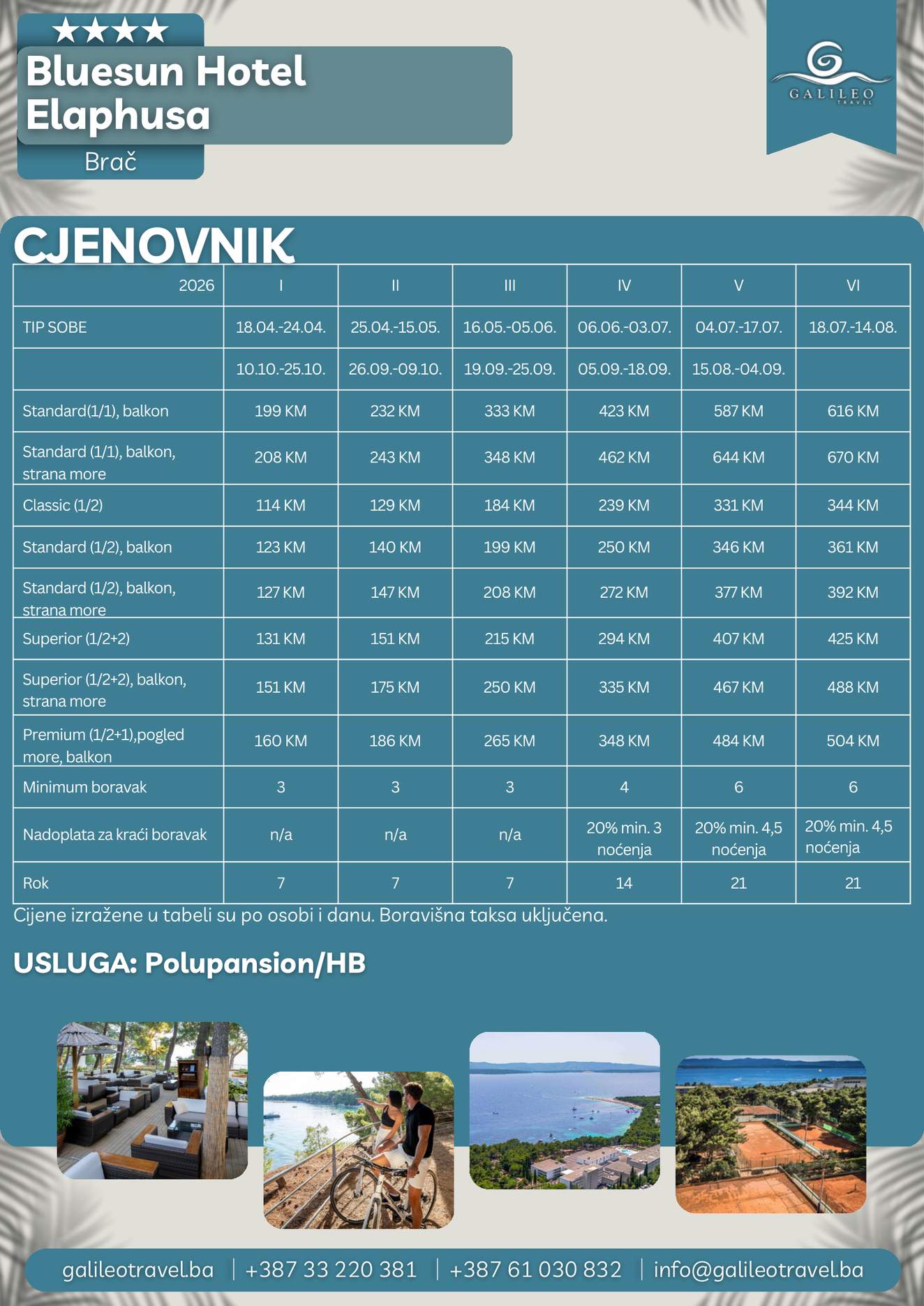 Elaphusa Brac Elaphusa Brac 199 Cijena od BAMKM199/osoba Broj putnika: 199 Ukupno KM 199 BAM Provjera dostupnosti O putovanju Destinacija: Hrvatska Smještaj: Dvokrevetne i trokrevetne sobe Polupansion: Uključen u cijenu Tip putovanja