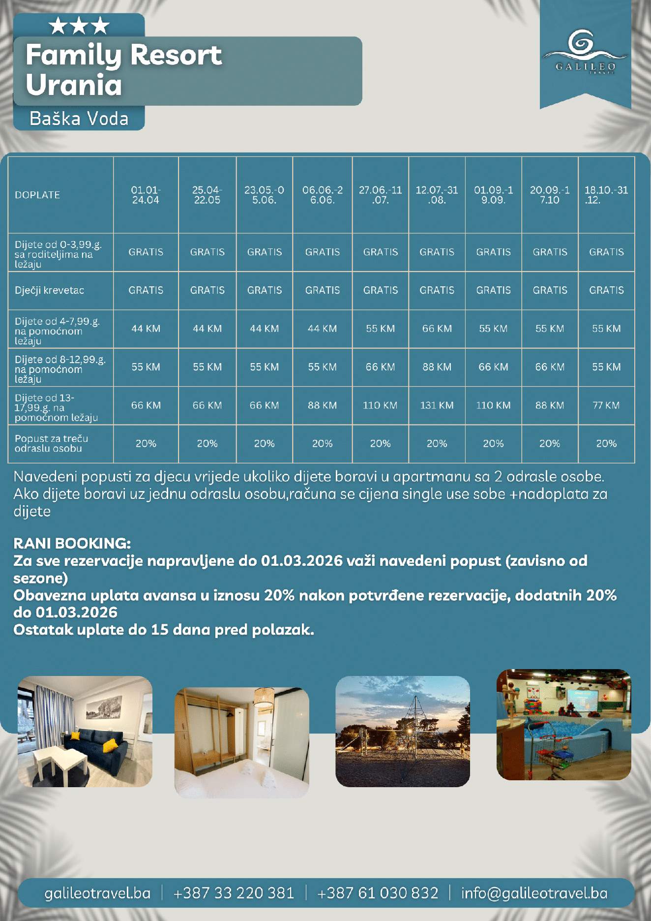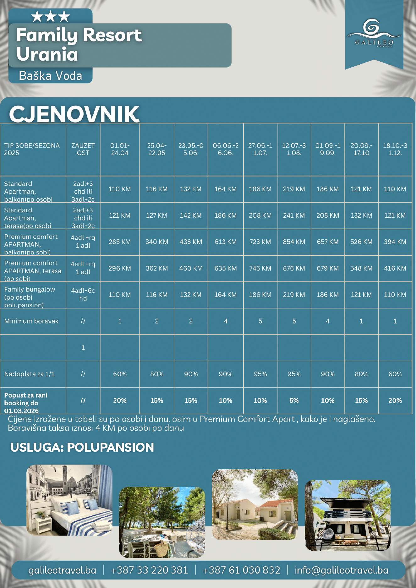 Family Resort Urania Family Resort Urania 110 Cijena od BAMKM110/osoba Broj putnika: 110 Ukupno KM 110 BAM Provjera dostupnosti O putovanju Destinacija: Hrvatska Polupansion: Uključen u cijenu Tip putovanja