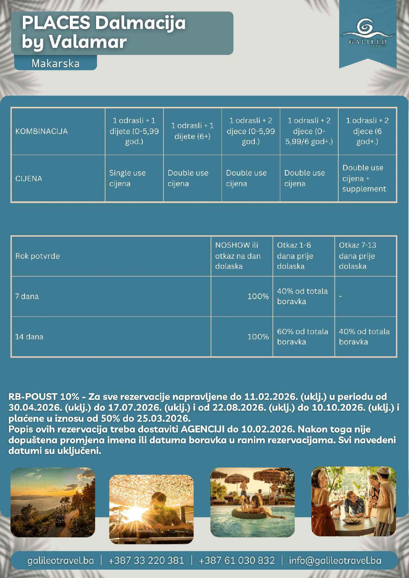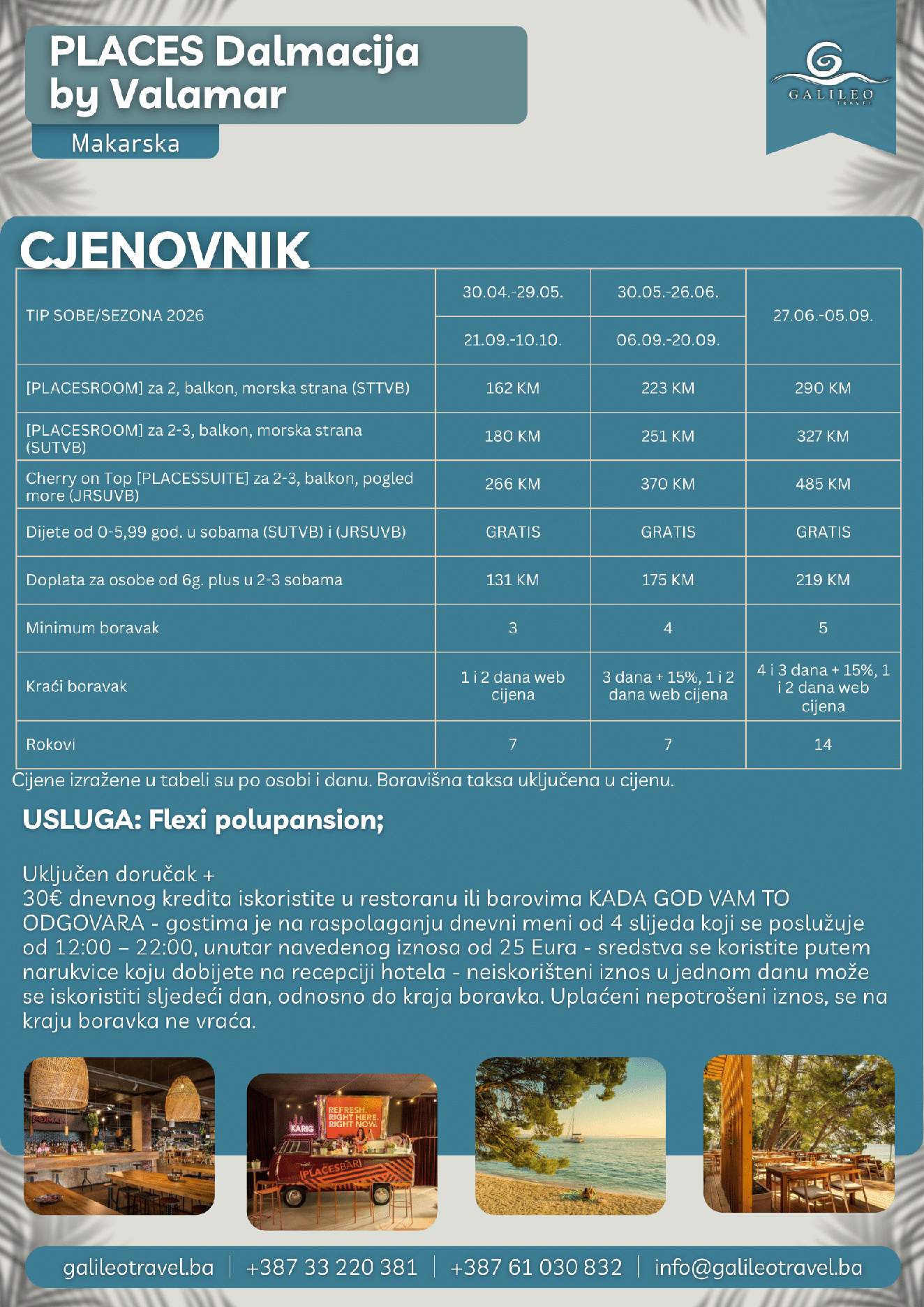 [PLACES] DALMACIJA BY VALAMAR MAKARSKA [PLACES] DALMACIJA BY VALAMAR MAKARSKA 162 Cijena od BAMKM162/osoba Broj putnika: 162 Ukupno KM 162 BAM Provjera dostupnosti O putovanju Destinacija: Hrvatska Smještaj: Dvokrevetne i trokrevetne sobe Flexi polupansion: Uključen u cijenu Tip putovanja